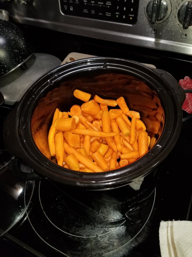 The carrot patch was being raided by a squirrel or a rabbit, so I had to grab everything. I ended up with about a gallon of small to medium carrots. I went ahead and cleaned them and cooked them in the crockpot with some stew meat and some homegrown potatoes. The were bitter as all get out! I added some brown sugar to the stew after the first serving, but I haven’t had any left-overs yet. I may just skip it. I’d eat it if I were starving, but (as my scale can attest) that is not the case currently.