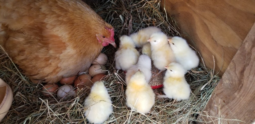 I’m still playing catch-up on all my Homestead tasks, including posting things about it here. In this installment, I’m going to show off the Momma Hen who decided to set for me, give a run-down of my first meat harvest, and also show off the newly hatched ducklings.